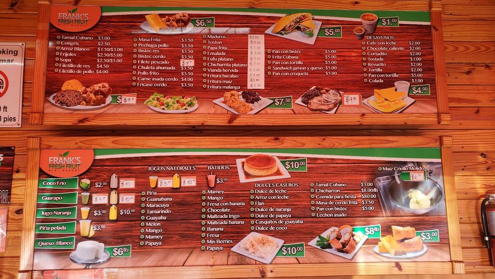 Welcome to Frank's Fresh Fruit Mini Market 2, a hidden gem nestled at 6480 SW 8th St in West Miami. This vibrant mini market is a delightful fusion of fresh produce and authentic Cuban cuisine, echoing the charm of an old-school farmers market. Customers rave about the jugos (juices), particularly the jugo de mamey and the famous Masa Fritas. The menu offers a variety of delicious options, from traditional Cuban tamales to hearty steak sandwiches and pan con bistec at unbeatable prices.